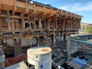 The photos below show two phases of work by Husk Preservation, INC. taking down posts in the mill. The posts were then shipped to Jan Lewandowski for repair. Later phases will include reinstalling the posts and doing insitu repairs to the ties under direction of Jan.